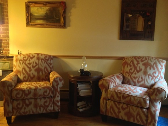 I was so impressed and excited that I cleaned out some of my own excess. And I immediately reversed my habits, inherited from B.—no clothes thrown about, etc. Then we confabbed on new couches and chairs and a fresh paint job and putting up photos and artwork we either had taken down during a flood or never bothered to put up at all. I was unable to contribute one cent to this, still “working” as I am without a salary. B. didn’t turn a thick hair. (His mane remains impressive, if a bit grayer than when we first met.) He has been the proverbial doll.